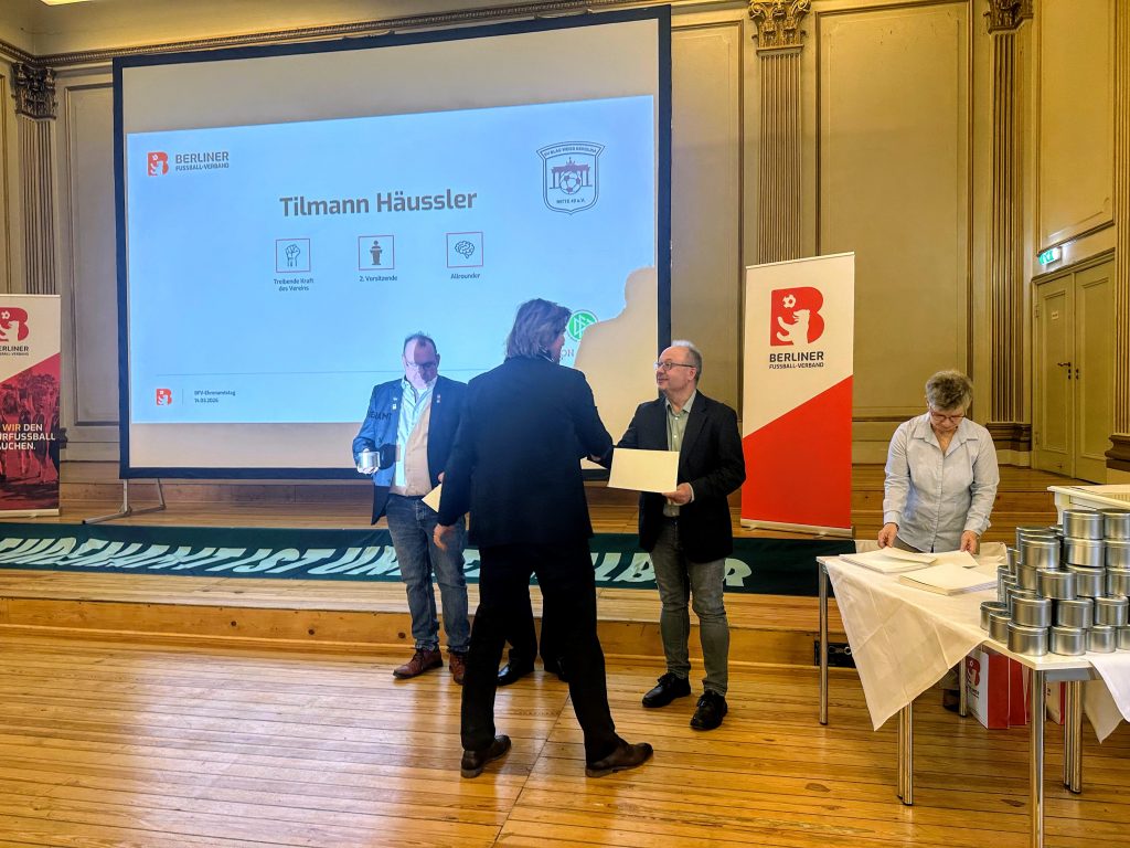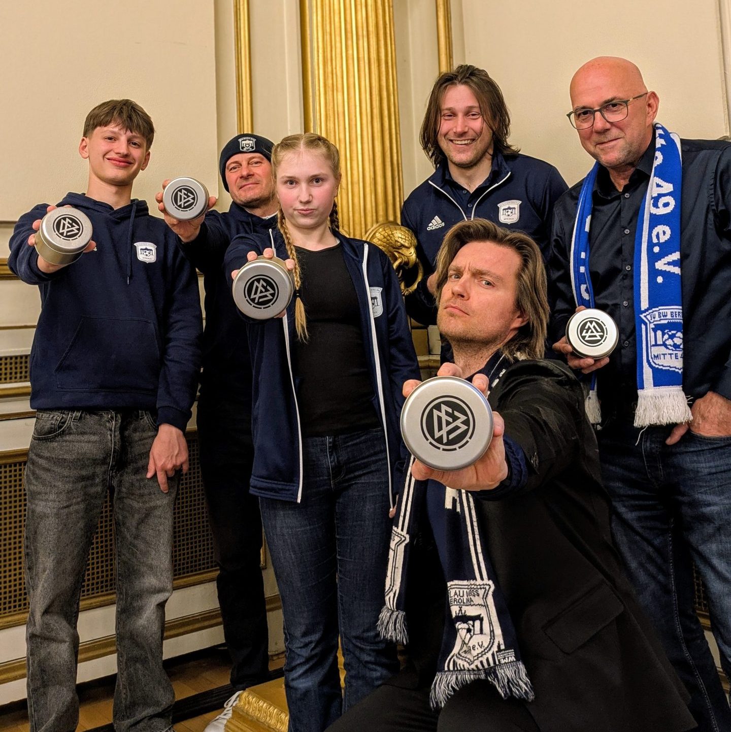 Für mein ehrenamtliches Engagement, vor allem für die Öffentlichkeitsarbeit bei Berolina Mitte habe ich einen Preis vom Deutschen Fußball Bund erhalten. Es gab feierliche Übergabe einer Urkunde und Armbanduhr, schönes Essen mit vielen weiteren Preisträger*innen und zum krönenden Abschluss noch eine gemeinsame Tour ins Olympiastadion zu einem Heimspiel von Hertha.