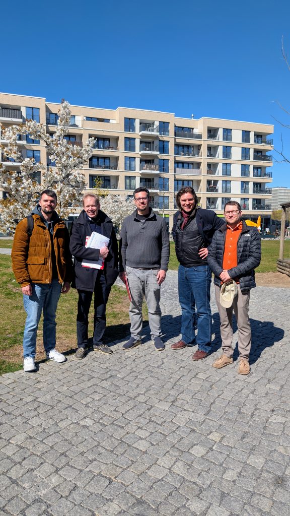 Bei einer Ortsbegehung in der Europacity habe ich mich gemeinsam mit Stadtrat Ephraim Gothe, BVV-Kandidat Stanislav Klimovich sowie den Anwohnern Simon und Jan Wedel über aktuelle Herausforderungen und Ideen für das Quartier ausgetauscht.